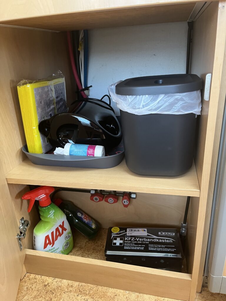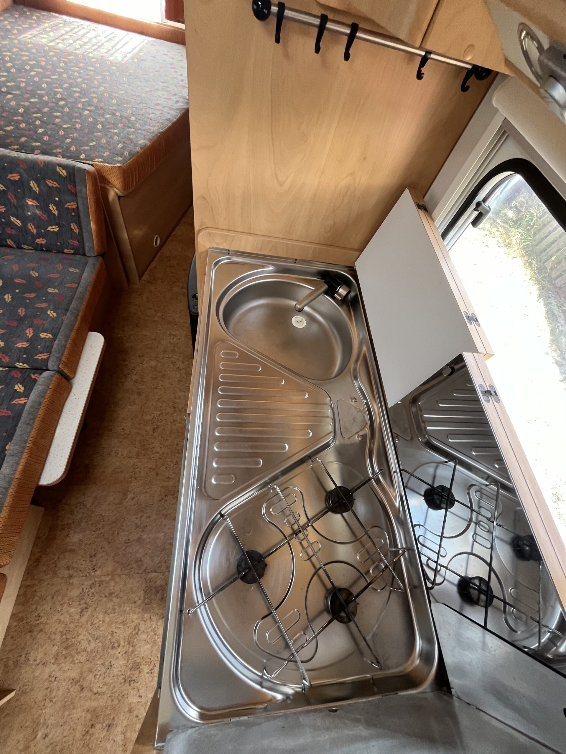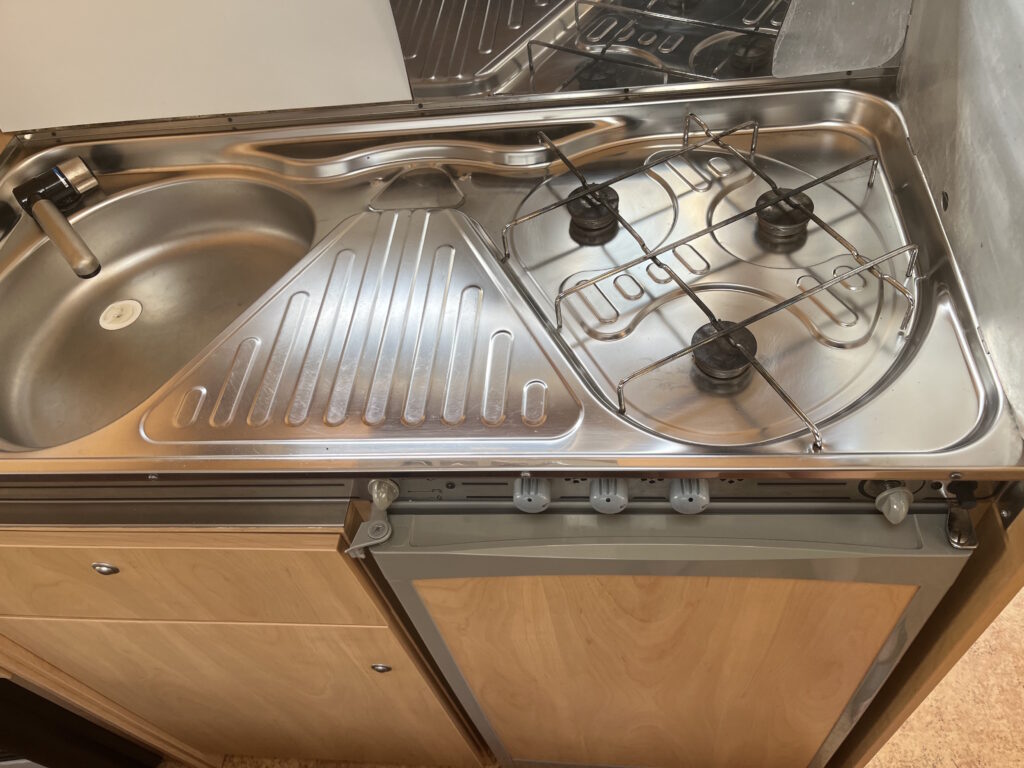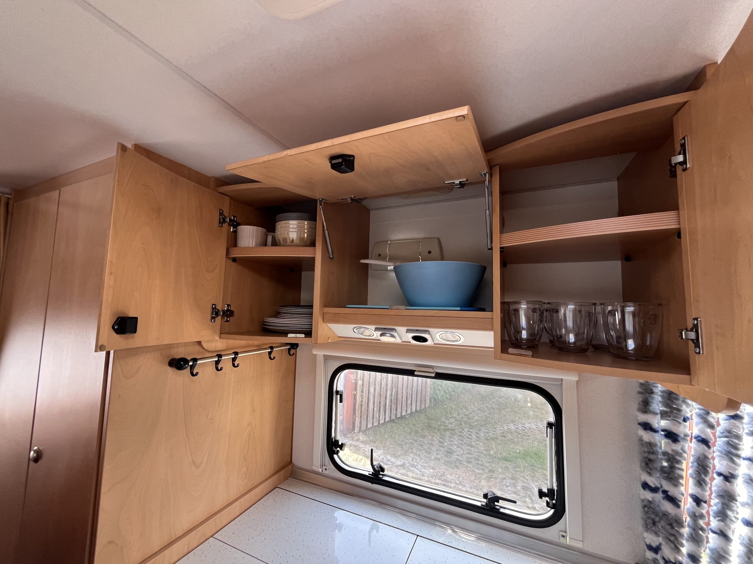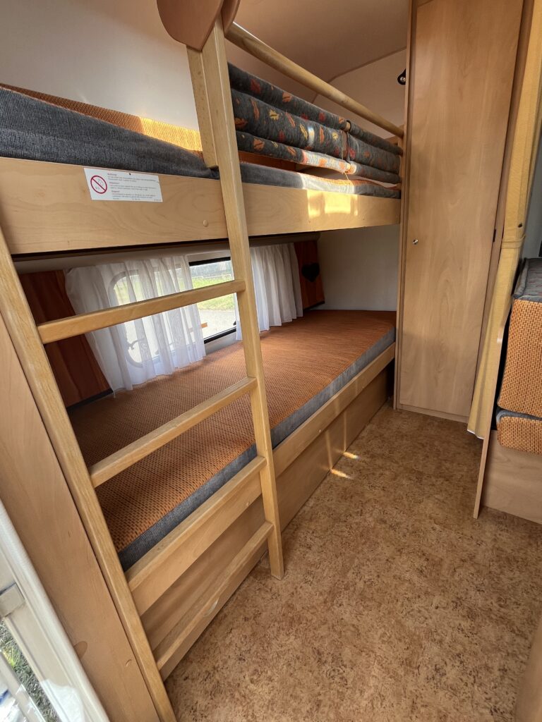 Peřiny a polštáře podle počtu osob (vezměte si prosím vlastní povlečení a prostěradla). Kuchyně je také plně vybavená, možnost i venkovního vaření na plynu. Dále ve výbavě najdete šňůru na prádlo a kolíčky, kanystr na čistou vodu, prodlužovací kabel pro připojení v kempu na 230V, plynovou láhev pro topení a plynovou ledničku, schůdky, držák na dvě kola a markýzu. V karavanu je stolek, židle a koberec pro venkovní posezení.